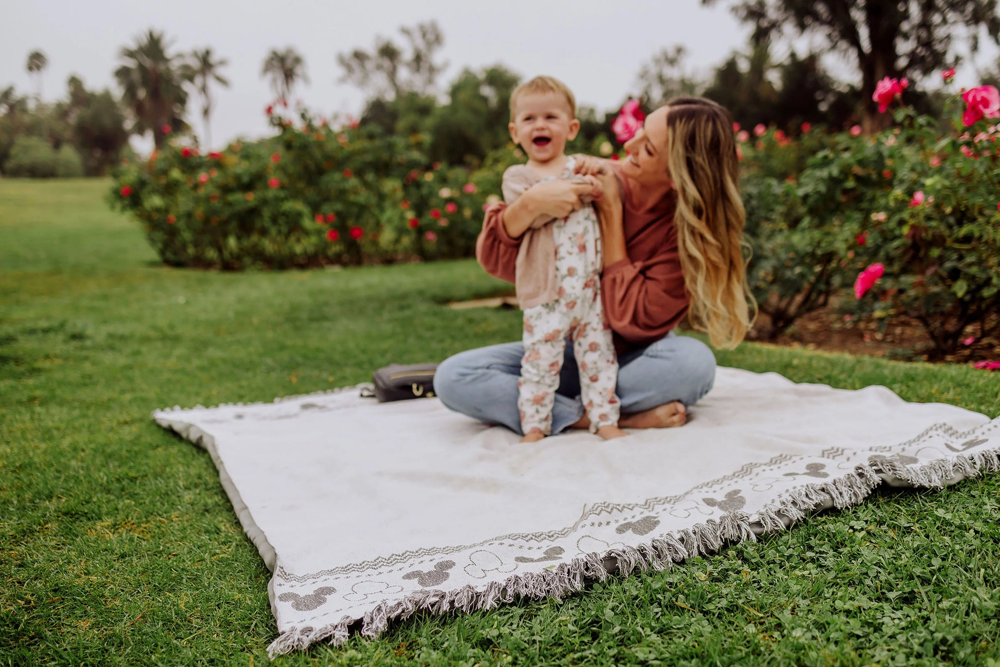 Searching for the perfect combo of cottage-core cute, outdoor-ready water-resistance, and Disney magic? Well, here it is: The Mickey Mouse Farmhouse Blanket!